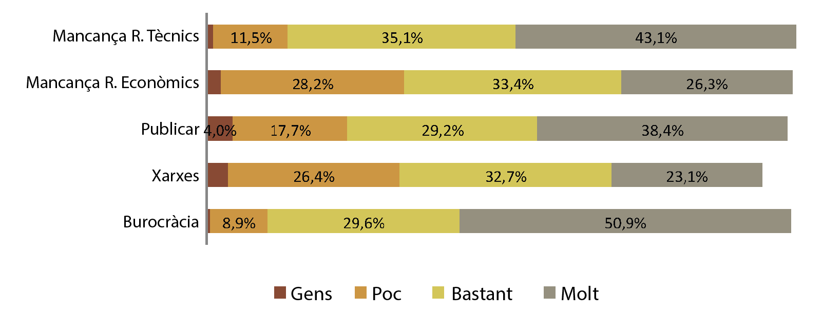 Valoració dels problemes associats amb la gestió (distribució percentual).