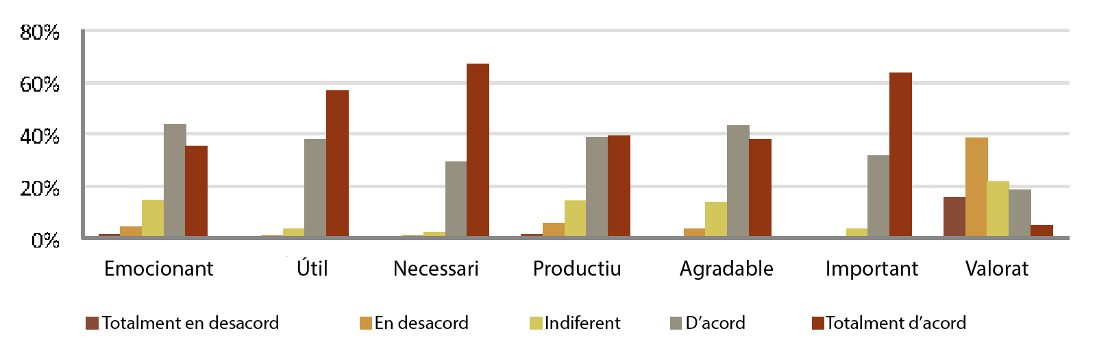 Valoració dels qualificatius associats amb la recerca (distribució percentual).